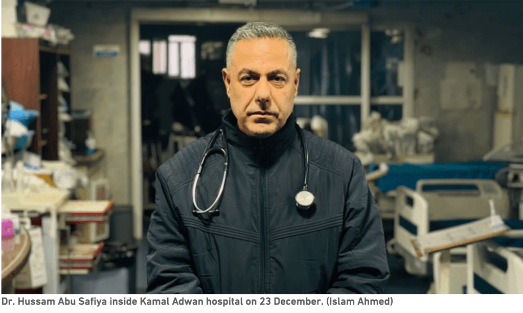 The director of the hospital, Dr. Safiya, has been captured by Israelis and has been taken to one of the most abusive and troubling “detention centers” run by Israel.